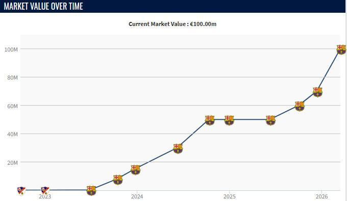 在3月份公布的西甲球员最新身价中,费尔明的身价暴涨了3000万欧元,达到了1亿欧元,本赛季还有将近两个半月的时间,他的身价已经上涨了总共5000万欧元。